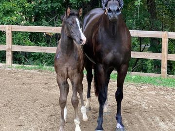 Coming 2yo now! This amazing black stallion is out of Milym BellaRose and sired by Diesel CF. He can be anything when he grows up with a nice blend of dressage and hunter/jumper breeding.
